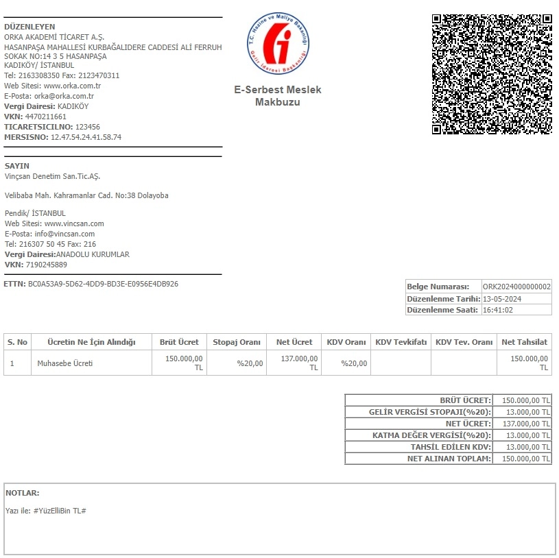 E-Serbest Meslek Makbuzu’nda Yer Alması Gereken Bilgiler